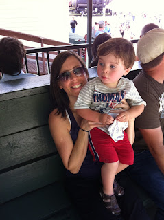 Once we got off, Colt led me to the petting zoo to see all the animals...he LOVES animals and doesn't consider them biting him at all since he doesn't mind sticking his hand through any cage that he can. Here he is petting a rabbit, which he did for a long time. Once he was grabbing one of the rabbit's faces...I put an end to that...eek.